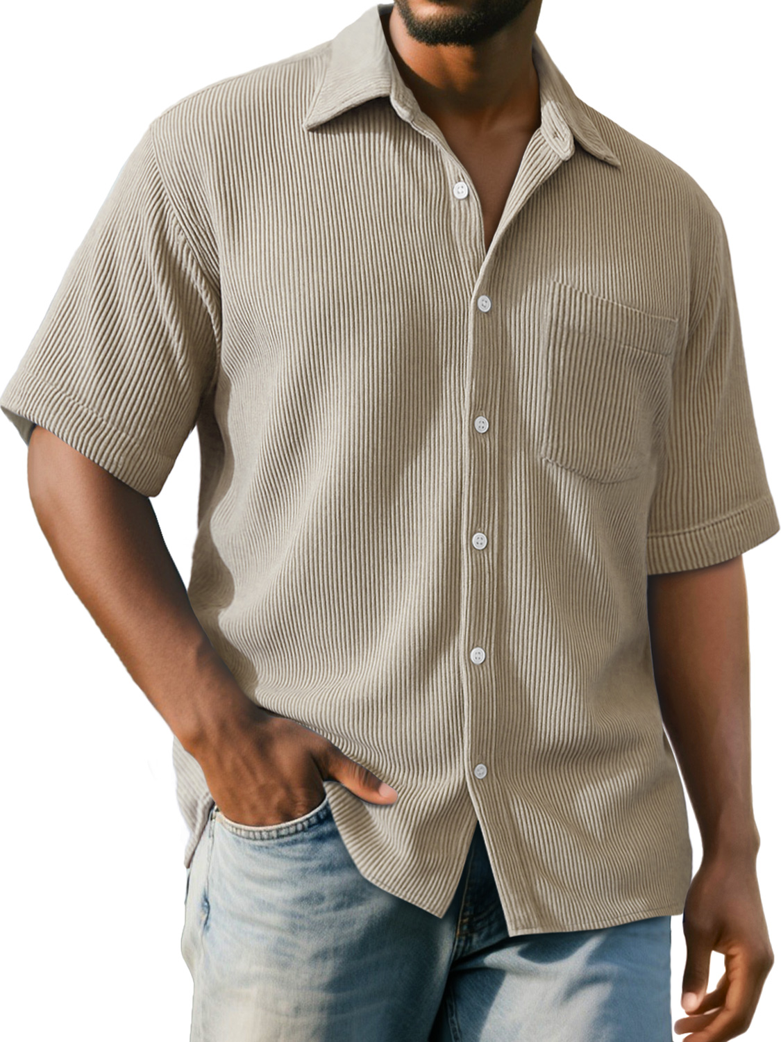 Men's Daily Ribbed Pocket Casual Comfort Solid Color Short Sleeve Shirt